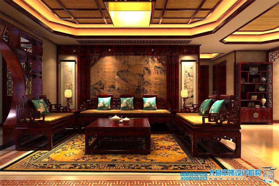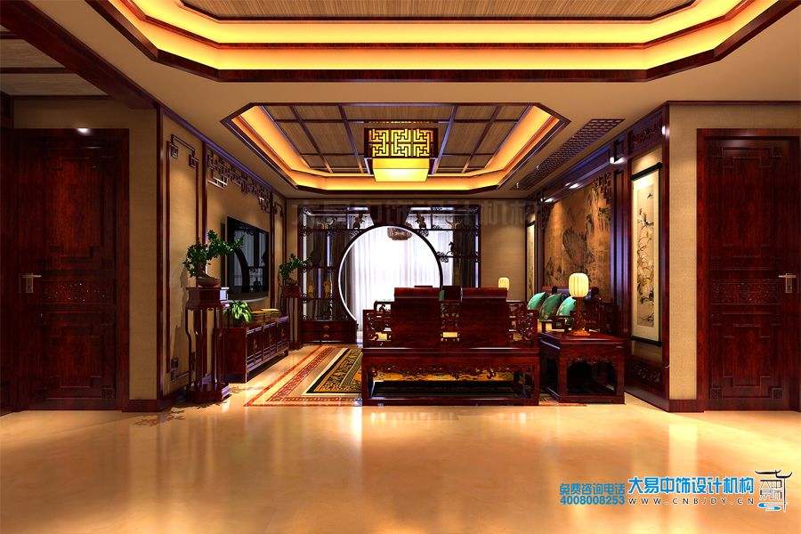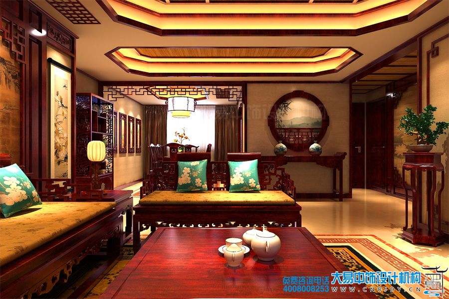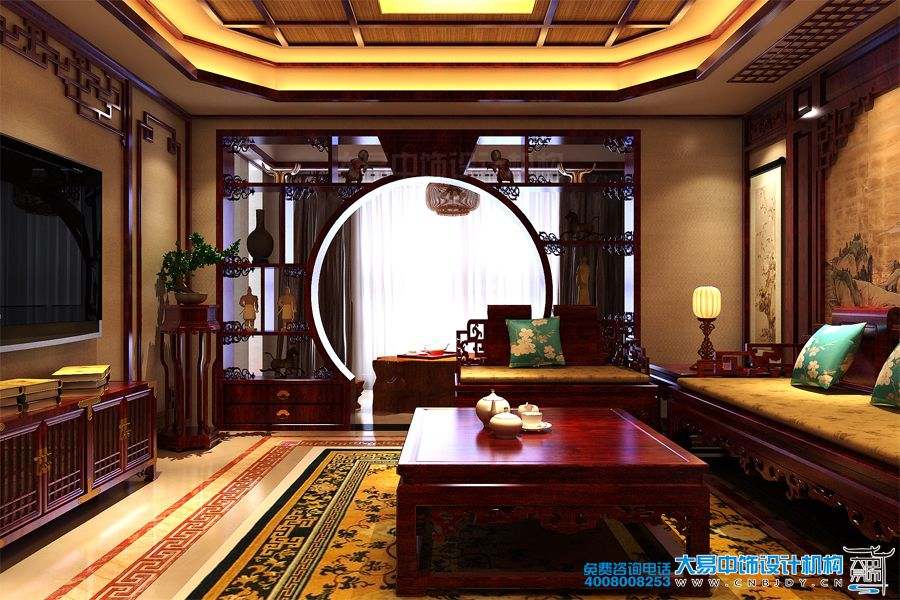 客廳中式設(shè)計(jì)古樸、大氣,讓空間看起來清亮、寬敞