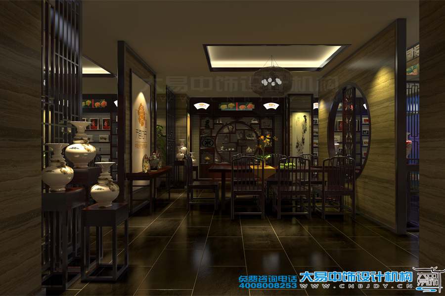 新中式茶會(huì)所裝修效果圖,以深沉而厚重的色調(diào)、優(yōu)雅唯美的陳設(shè),渲染了一份澹泊致遠(yuǎn)的寧?kù)o。況且會(huì)所內(nèi)部大量的古典中式家具陳列,素雅空靈,復(fù)古墻體設(shè)計(jì)及青花瓷等配飾的擺放,寧?kù)o幽馨,中式水墨畫的懸掛,底蘊(yùn)內(nèi)涵,石雕古樸而脫灑,燈具靈動(dòng)而曲美。這些裝飾各具特點(diǎn),伴隨著茶香之韻,將古雅之美完整的演繹出來。