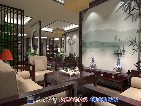 新中式紅木家具展廳,傳統(tǒng)室內(nèi)裝飾擺放貼切中式風(fēng)情,對稱而設(shè),有中庸之道。