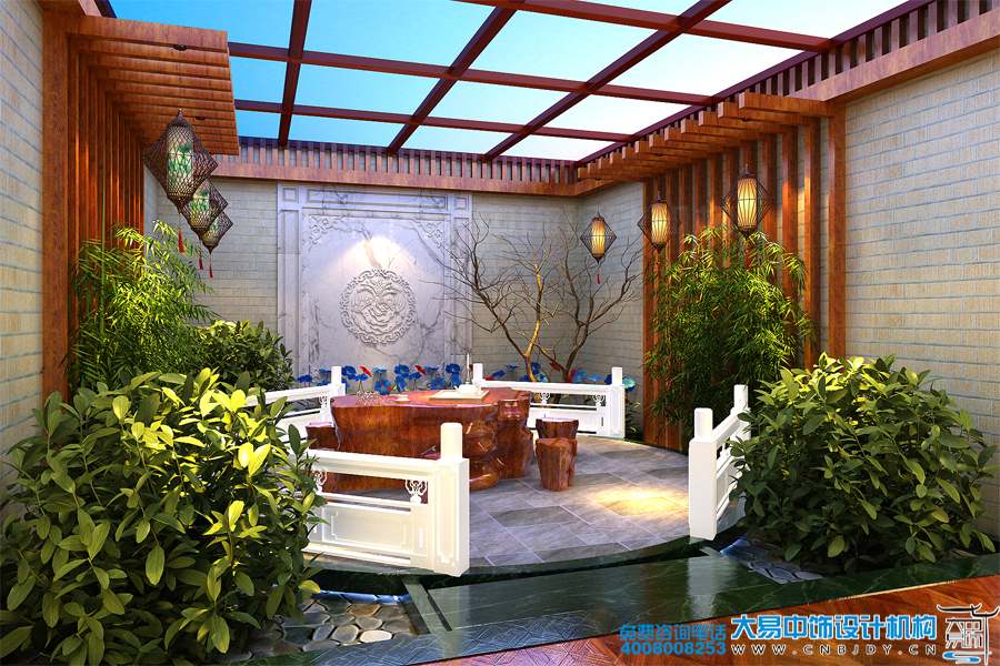地下庭院整體環境和諧優雅,集人工之美與自然清新之韻,,別有一番古樸、典雅的審美情調