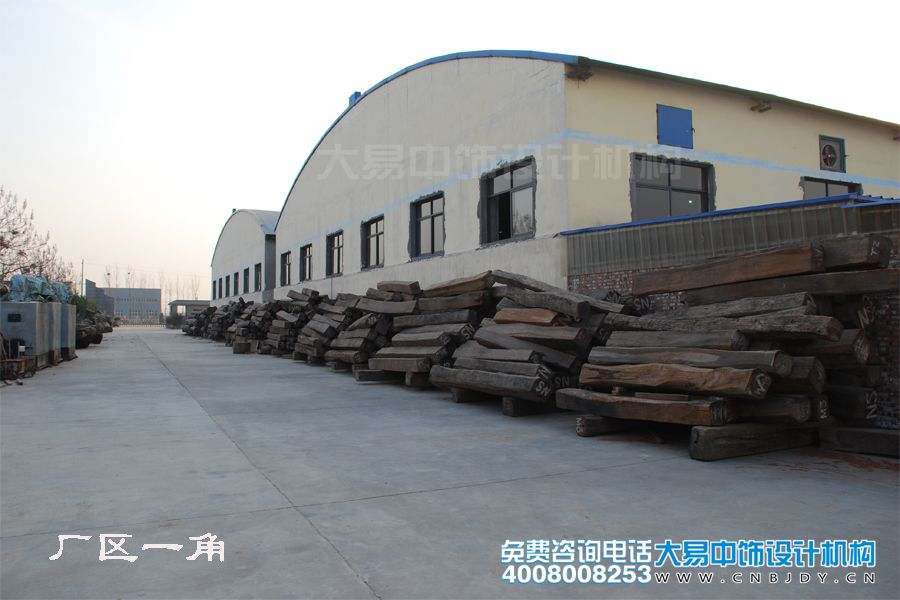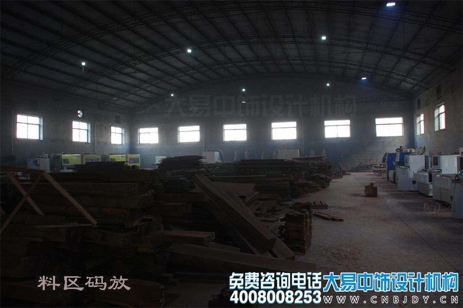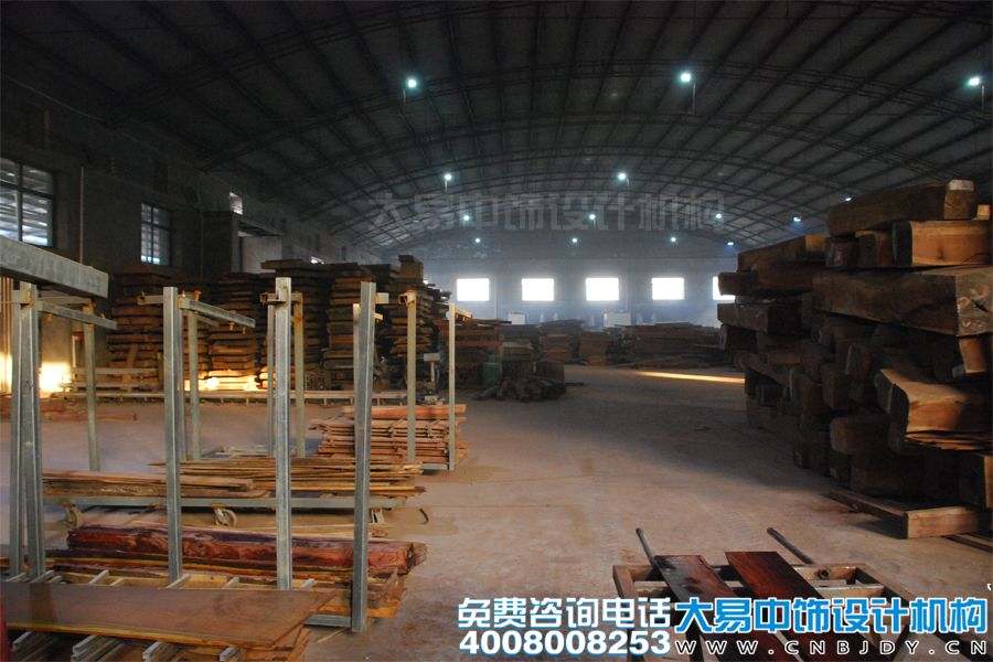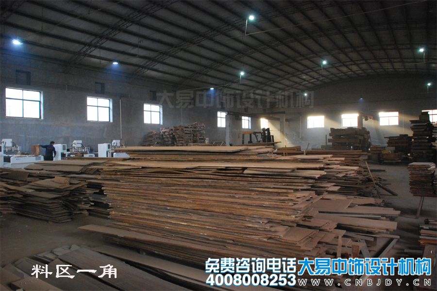 料區碼放規整, 各類不同的紅木材料各自整齊的堆放在一處