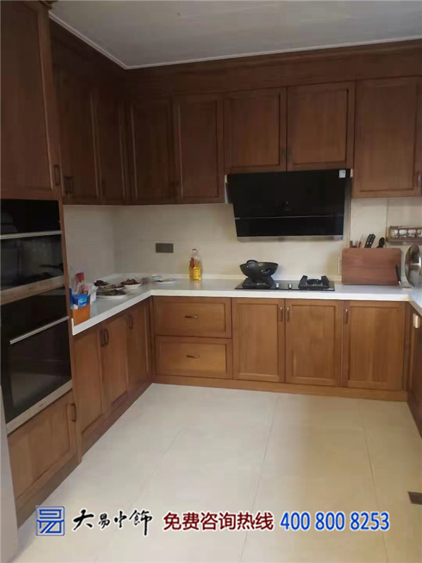本案例中:業主要求廚房實木裝修,要大氣。大易中飾根據業主需求,結合廚房戶型,制定u形設計方案,具體如下。