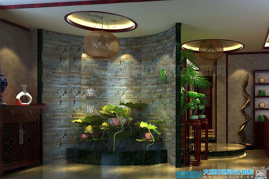 進入茶館,門廳處那一抹清荷飄逸的雅趣之美,與傳統的建筑氛圍融為一體,古色古香、引人入勝