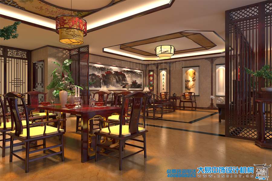 餐廳中式裝修散發(fā)著濃郁的中式風,也體現(xiàn)出清新簡潔的現(xiàn)代氣息