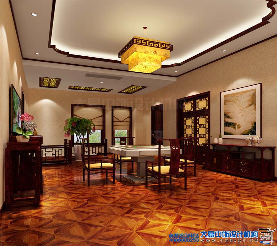 中式麻將室裝修舒適、柔性,加上靈動時尚的設計技法組合,有效的為家庭建造出輕松閑適的娛樂氛圍