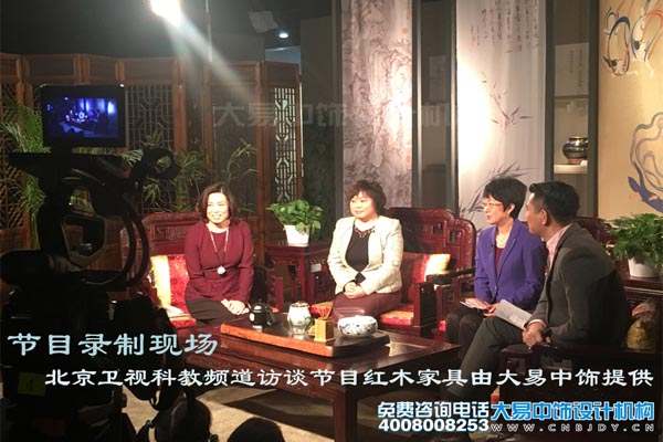 北京衛(wèi)視科教頻道訪談節(jié)目的制作人員在考察和選擇節(jié)目所用家具時,經(jīng)過多方比較與挑選,最終選擇了大易中飾紅木展廳的紅木家具作為節(jié)目錄制道具。大易紅木家具以其優(yōu)質(zhì)的品質(zhì)完成了節(jié)目的錄制并達(dá)到了很好的播出效果。